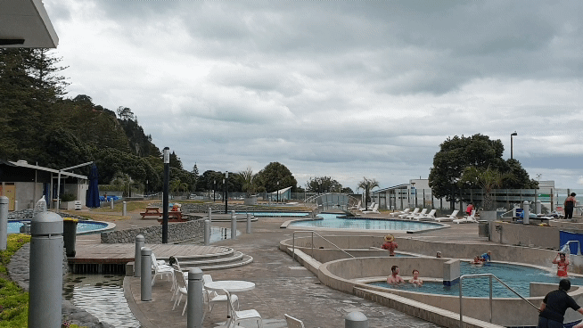 차가운 풀 2개와 따뜻한 커다란 풀 1개, 조금더 높은 온도의 작은 탕 2개가 있다.