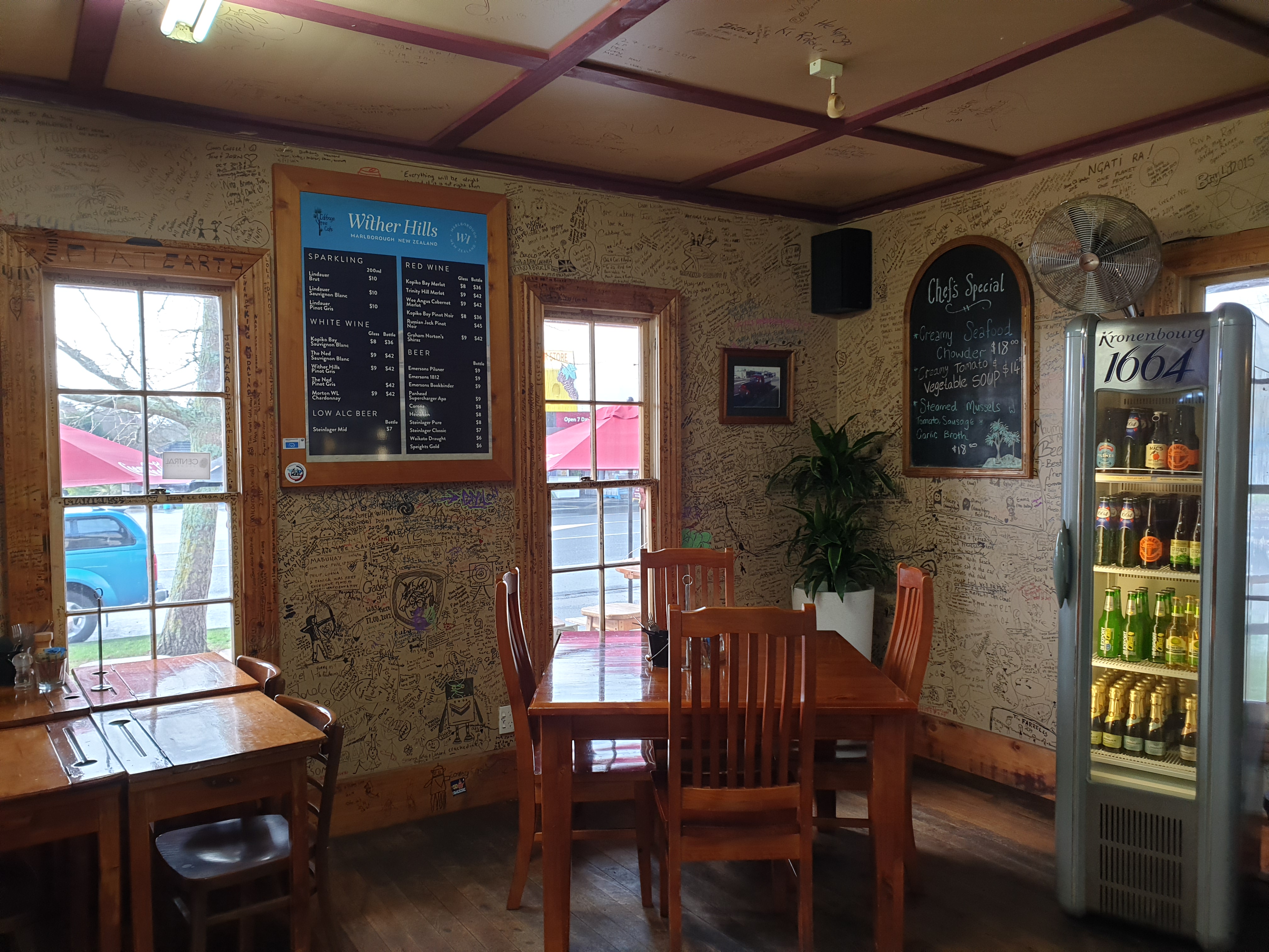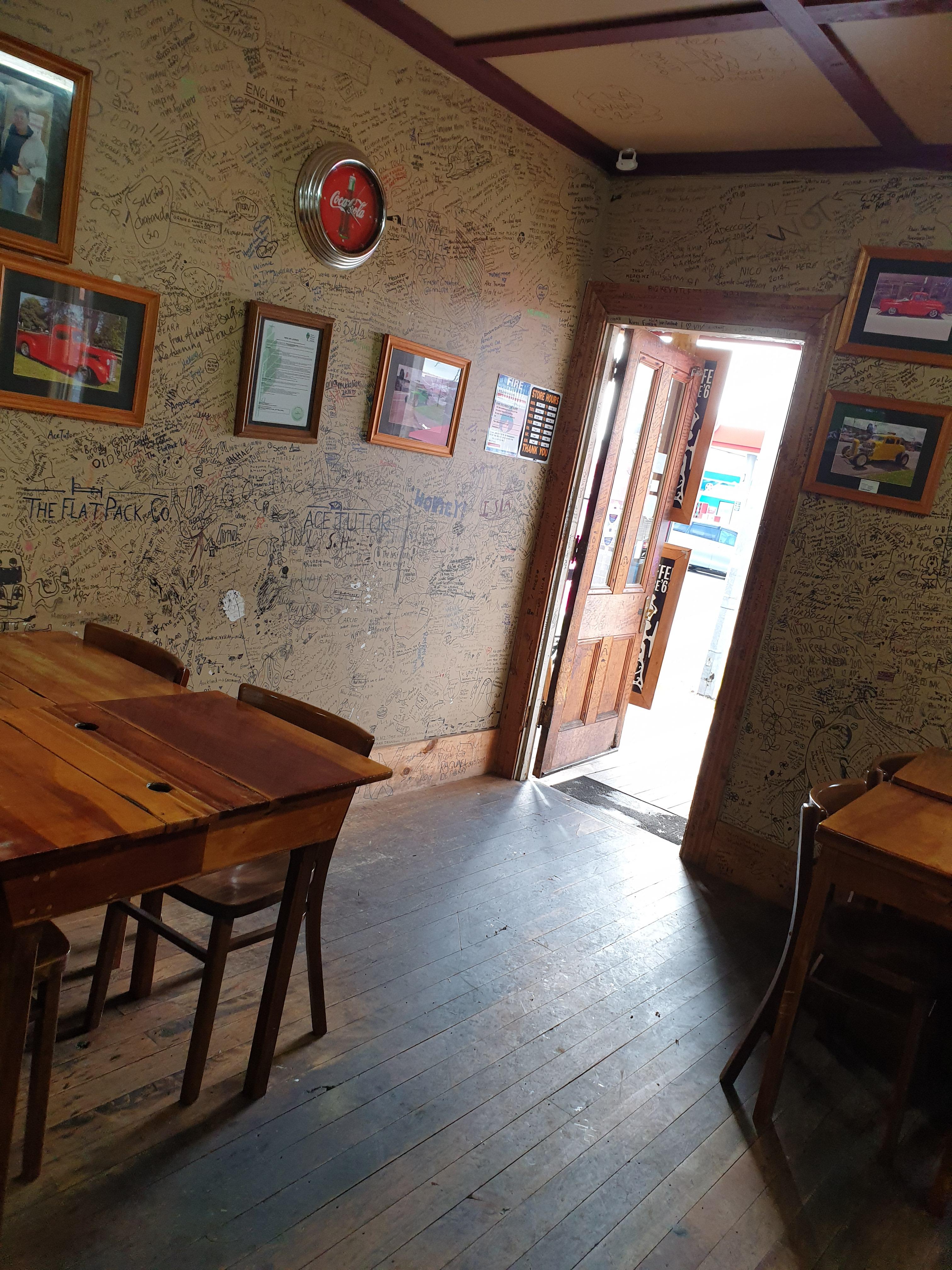 벽에 낙서가 여기저기 되어 있어 가게의 오랜 역사가 느껴진다.
