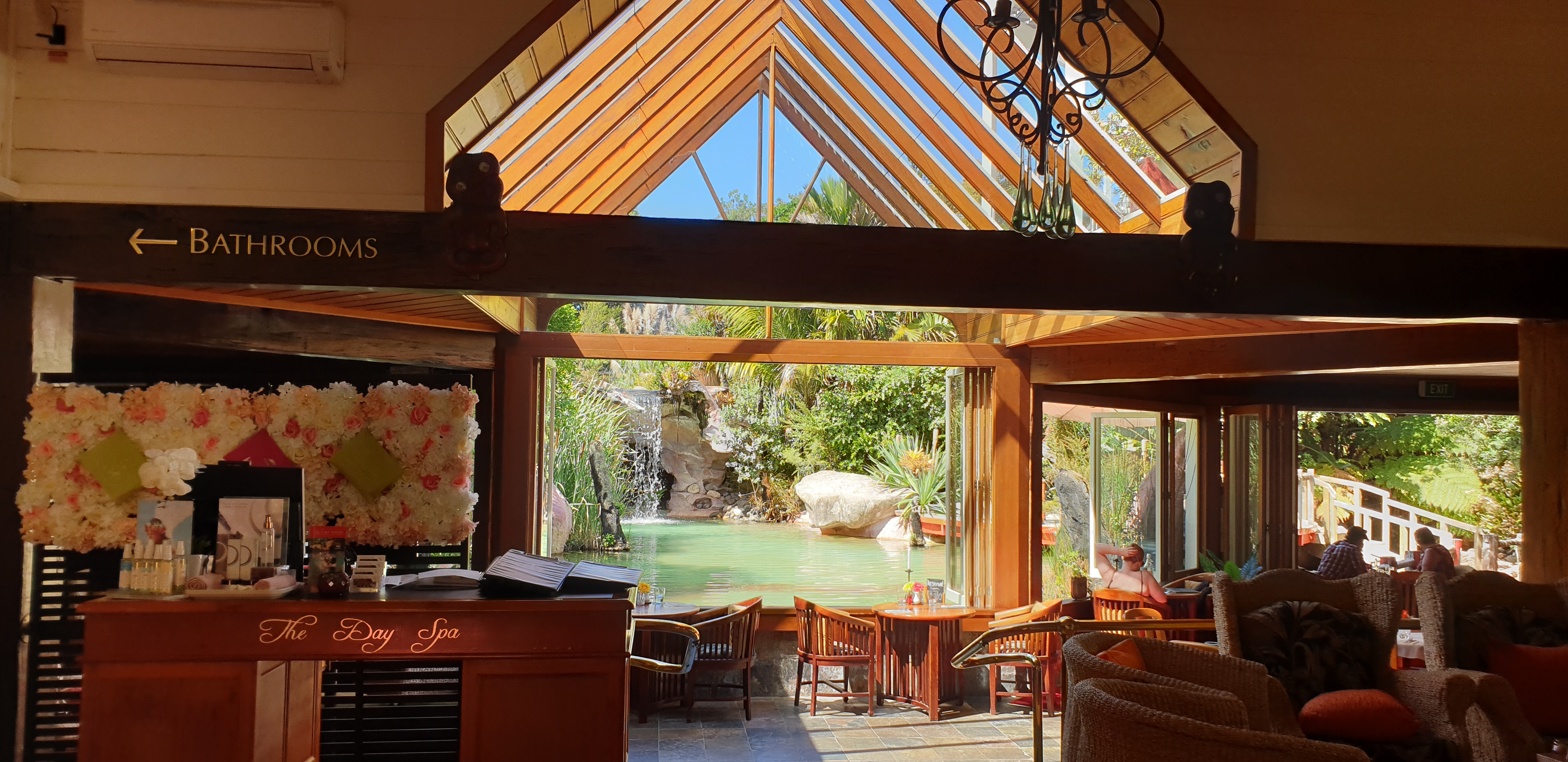 Geo-thermal Pools Friday - Saturday: 9:30 am - 9:00 pmLast booking 7.00pmSunday: 9.30am - 7pmLast booking 5.00pm Bookings Essential Day Spa Thursday - Sunday: 9.30am - 7pm Bookings Essential Bookings essential for Day Spa Restaurant Thursday: 9:00 am - 7: