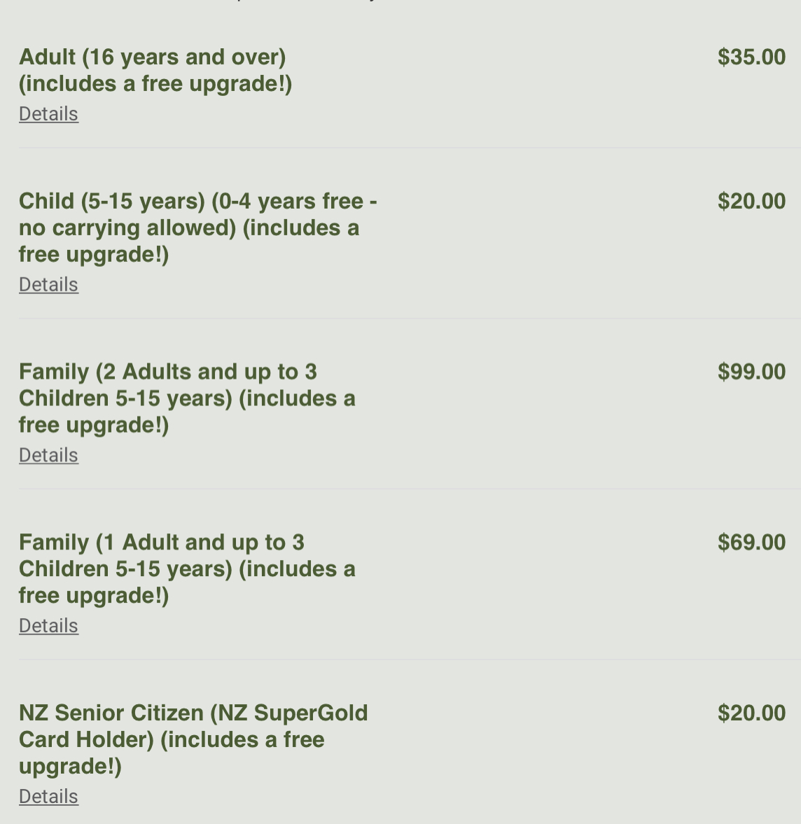 성인당 $35이며 사이트에서 예약도 가능하고 현장 결제도 가능하다.