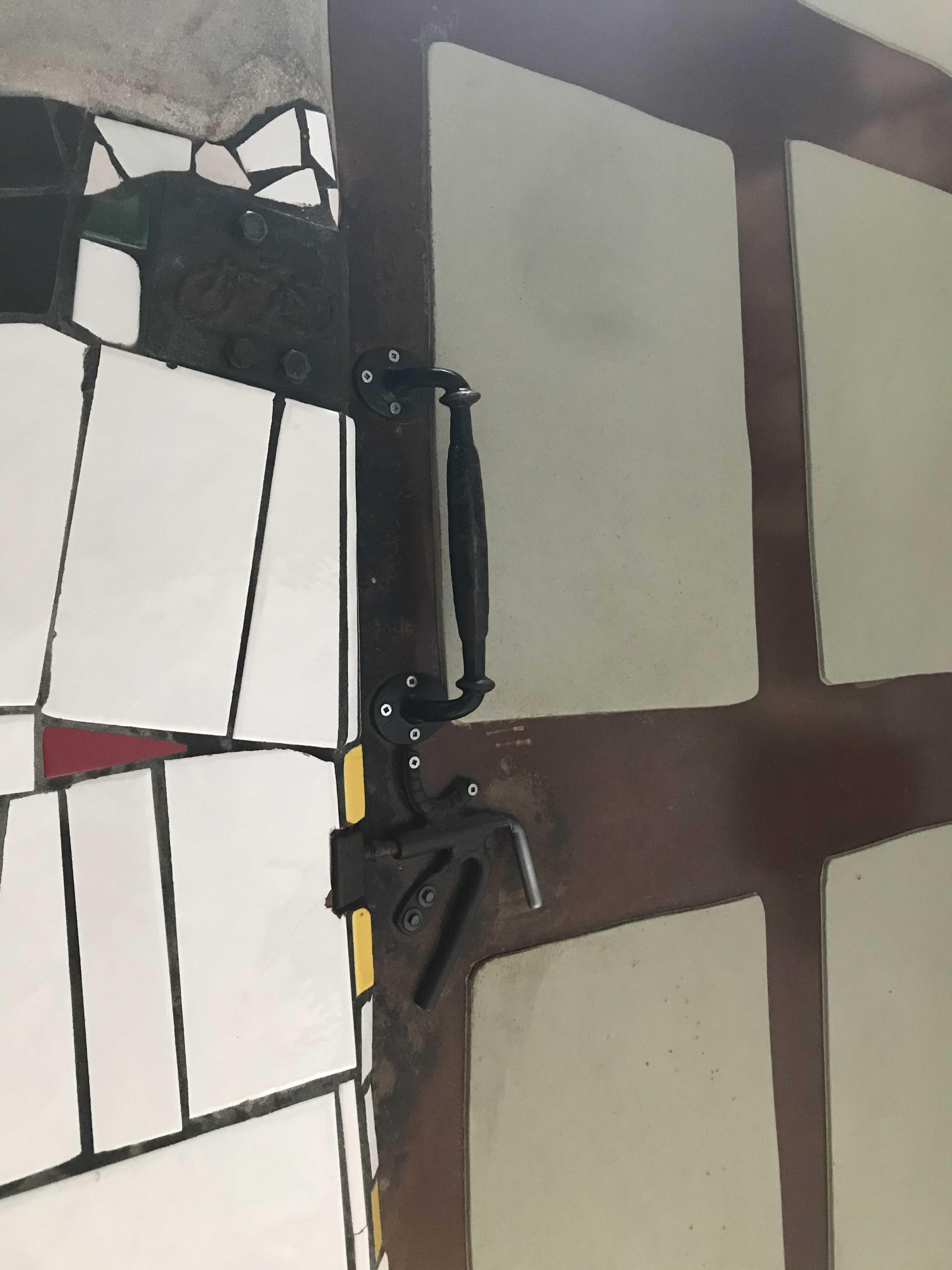 손잡이 옆 너머로 자전거 보양의 벽 장식이 보인다. 작은 정성이 여기 저기 뭍어난다.