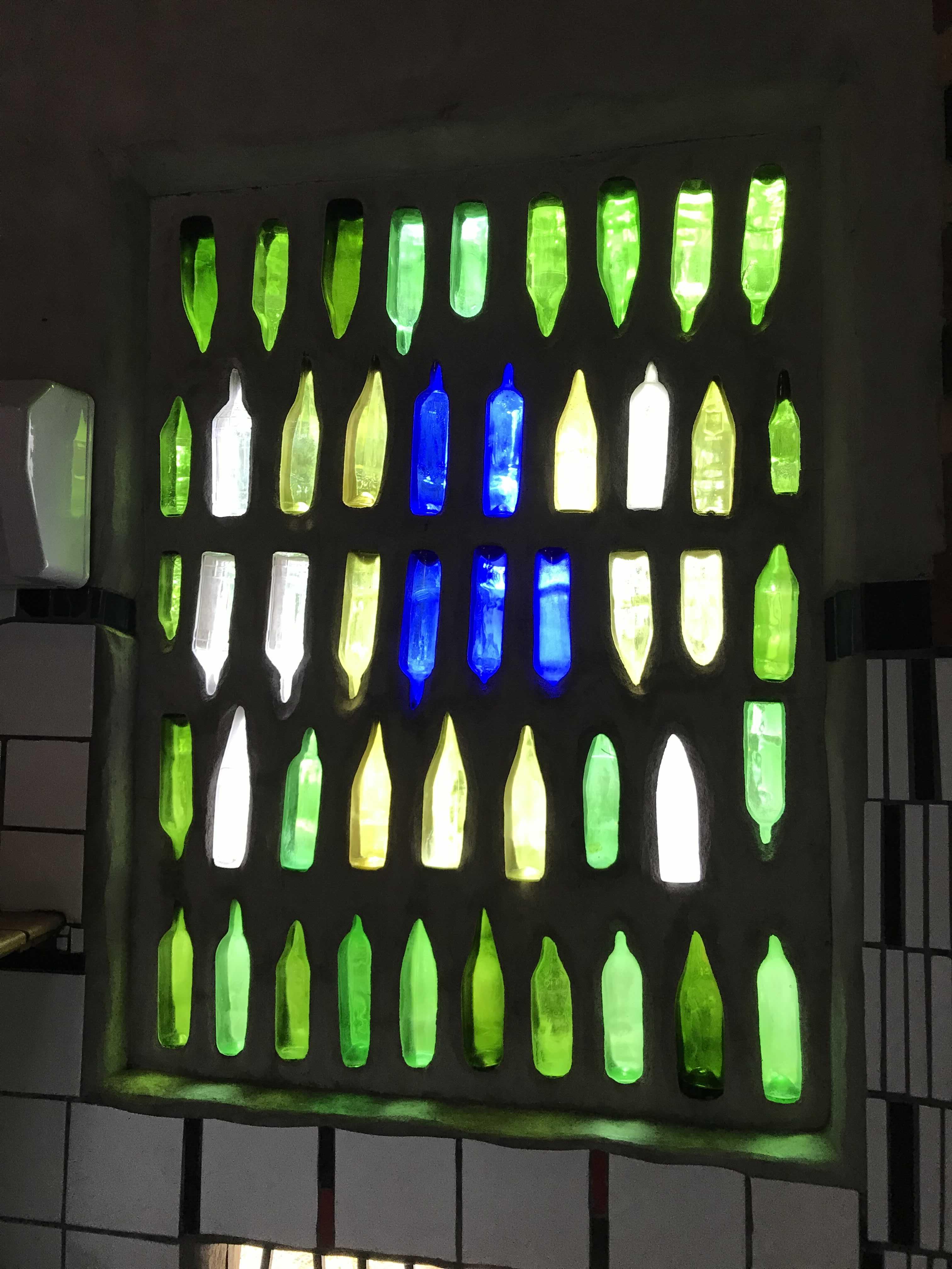 자세히 보면 유리병으로 장식을 한 것을 알 수 있다. 나중에 나도 벽을 장식할 일 있으면 참고해야겠다.