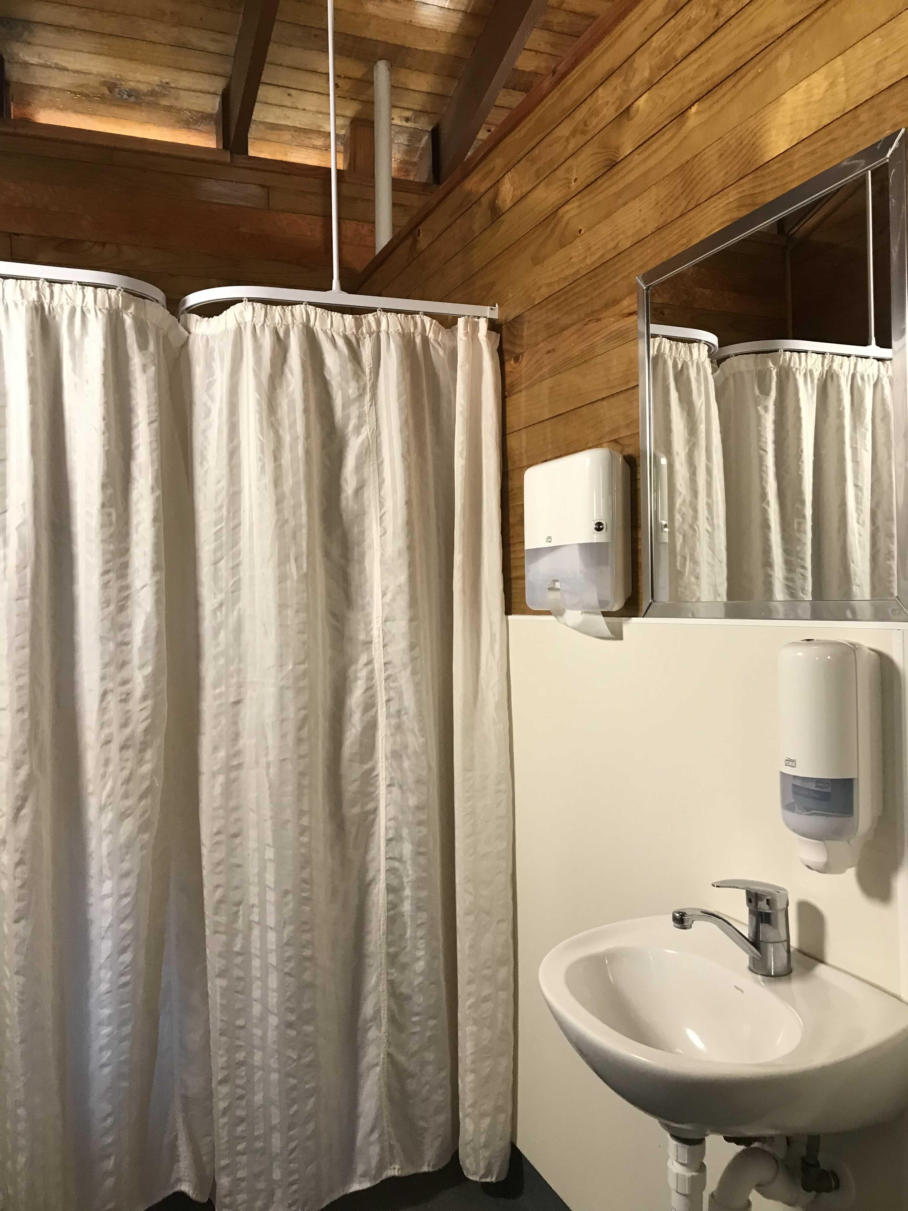 방수천으로 화장실과 샤워실이 구분되어 있다.