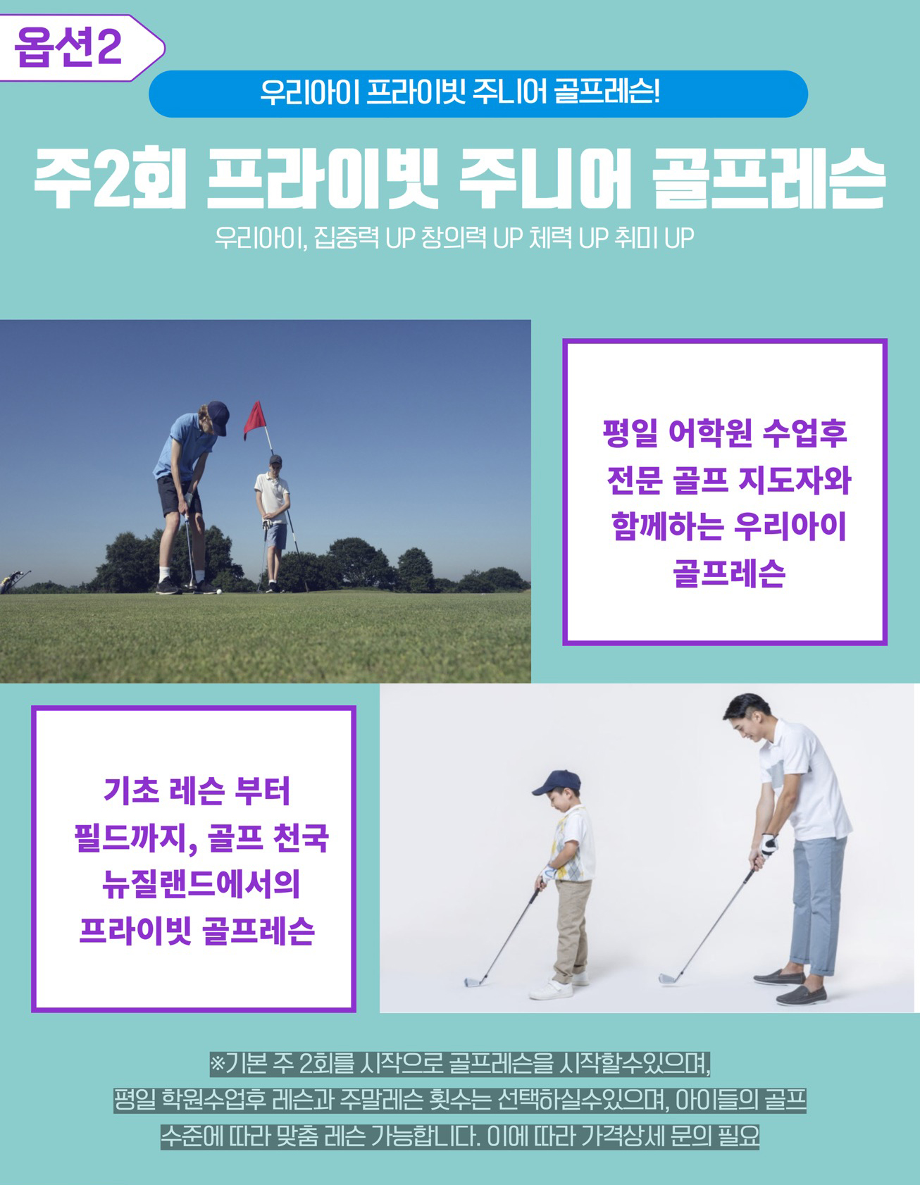 평소 골프에 관심이 많으셨다면 청정지역 뉴질랜드 필드에서 골프를 마음껏 배울 수 있는 더욱 좋은 기회입니다.