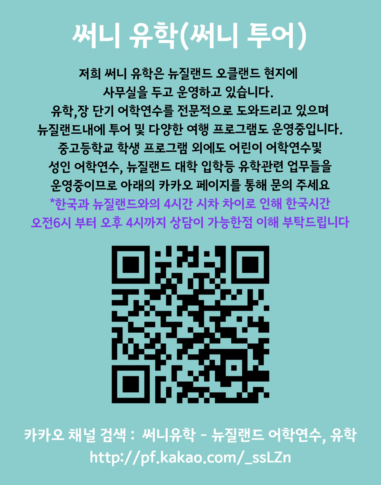 청소년 영어어학연수 ,우리아이 겨울방학 영어 어학연수 , 뉴질랜드 오클랜드 어학연수