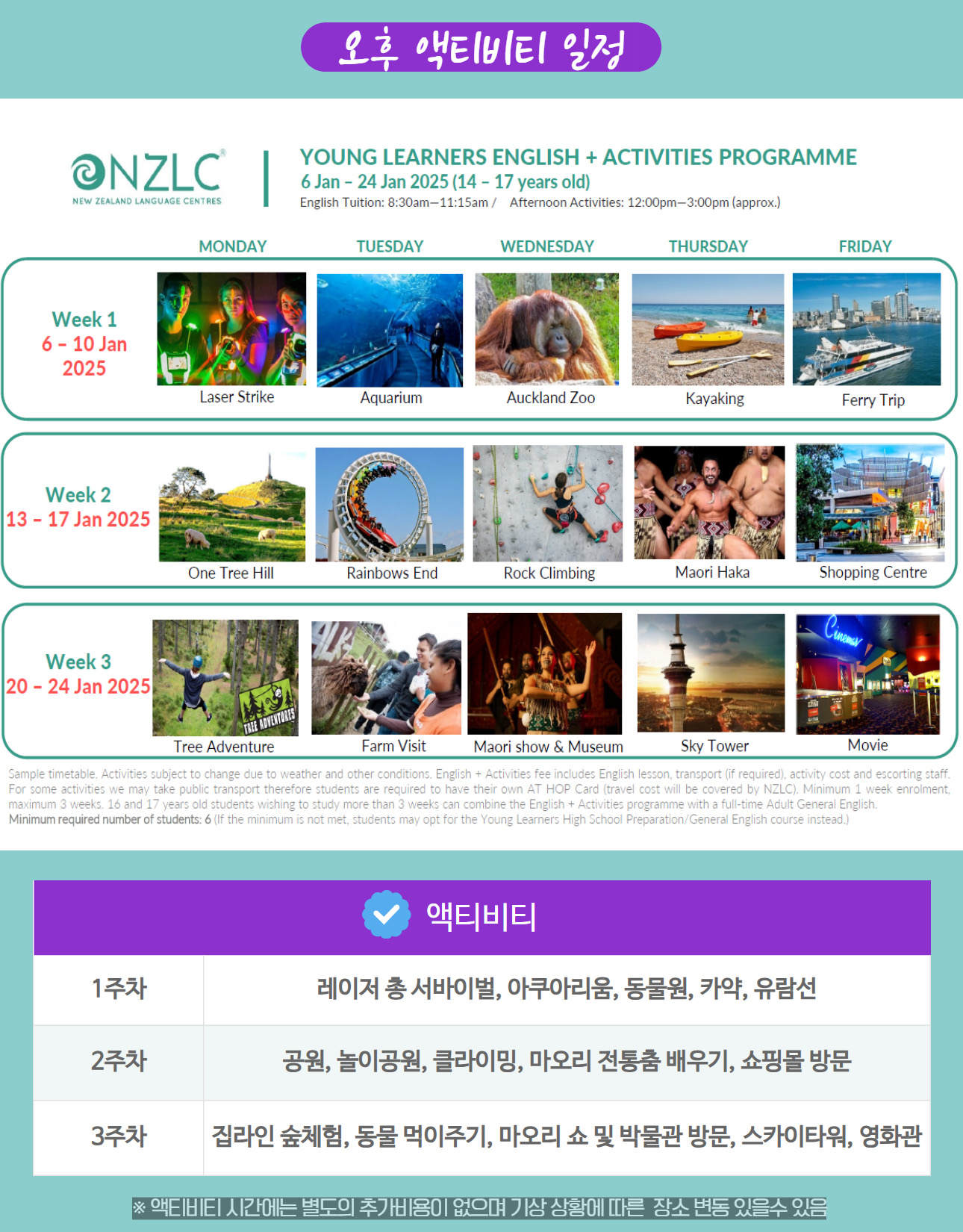 2025 뉴질랜드 겨울방학 청소년 영어 어학연수 모집중