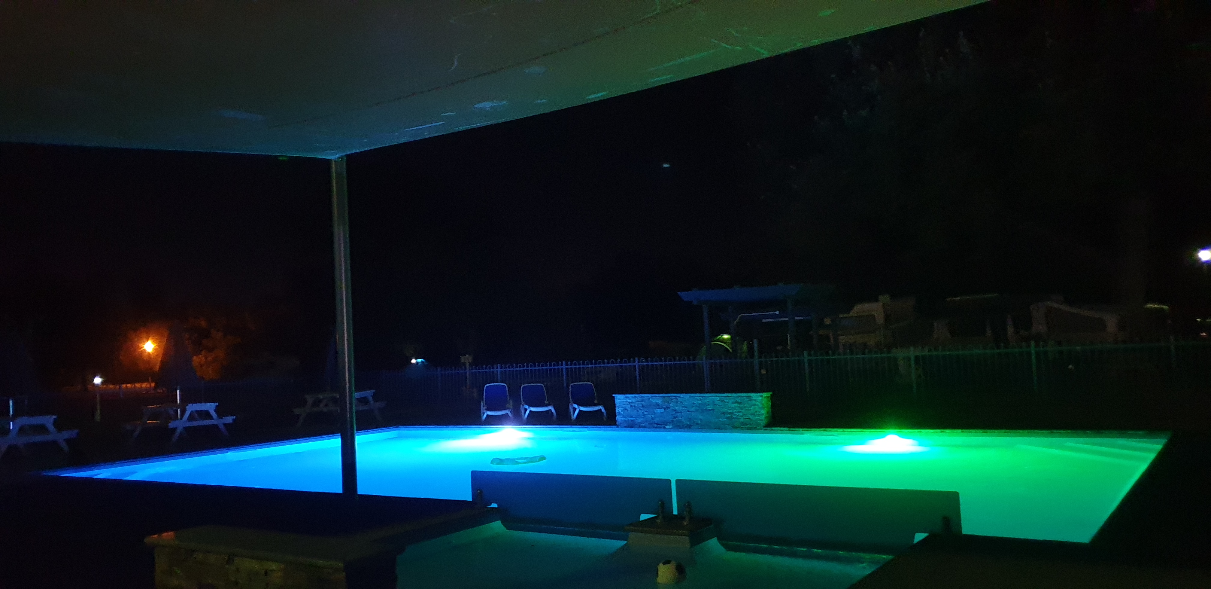 어느새 밤이다. 밤에 수영장은 조명이 비쳐서 아름다워 보인다.