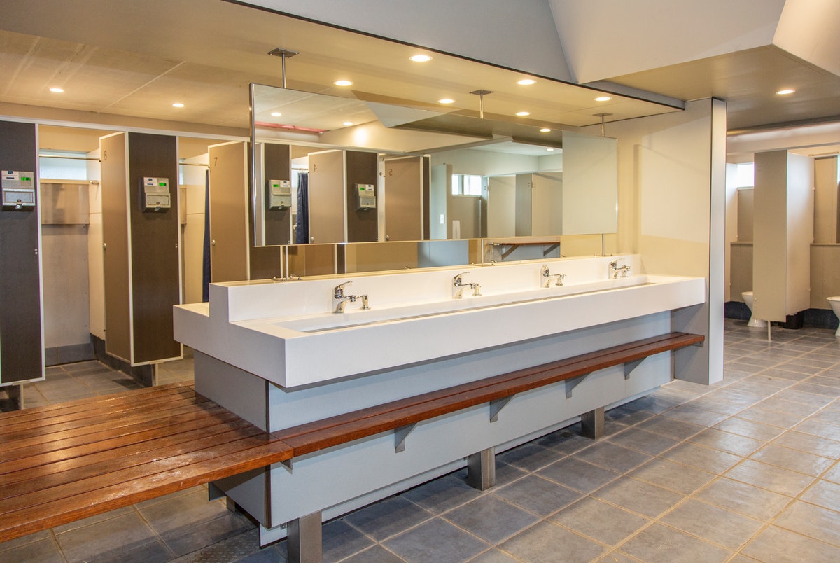 샤워실은 샤워실 칸에 들어가기 전에 있는 버튼을 누르면 7분 동안 사용 가능하다고 쓰여있다.