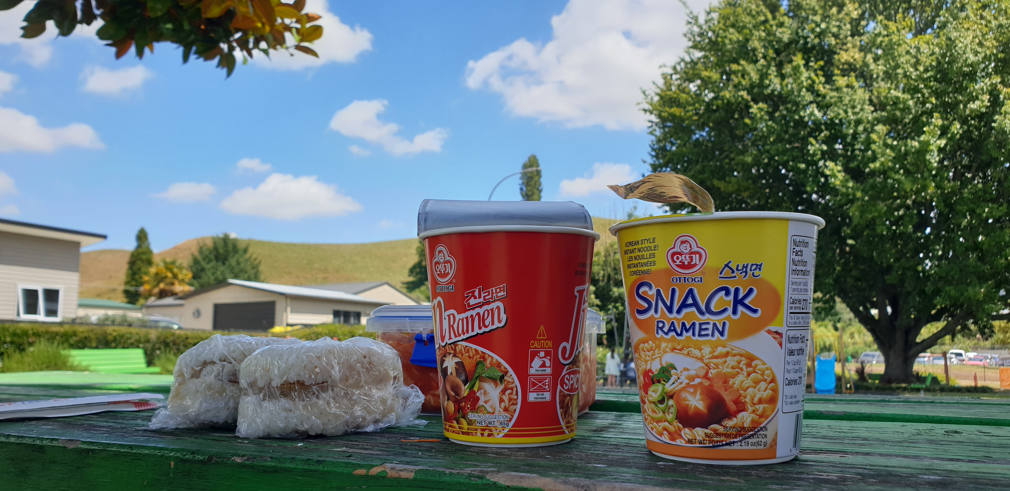 대신에 놀이터에서 간단하게 싸온 주먹밥과 라면으로 점심을 해결 했다.