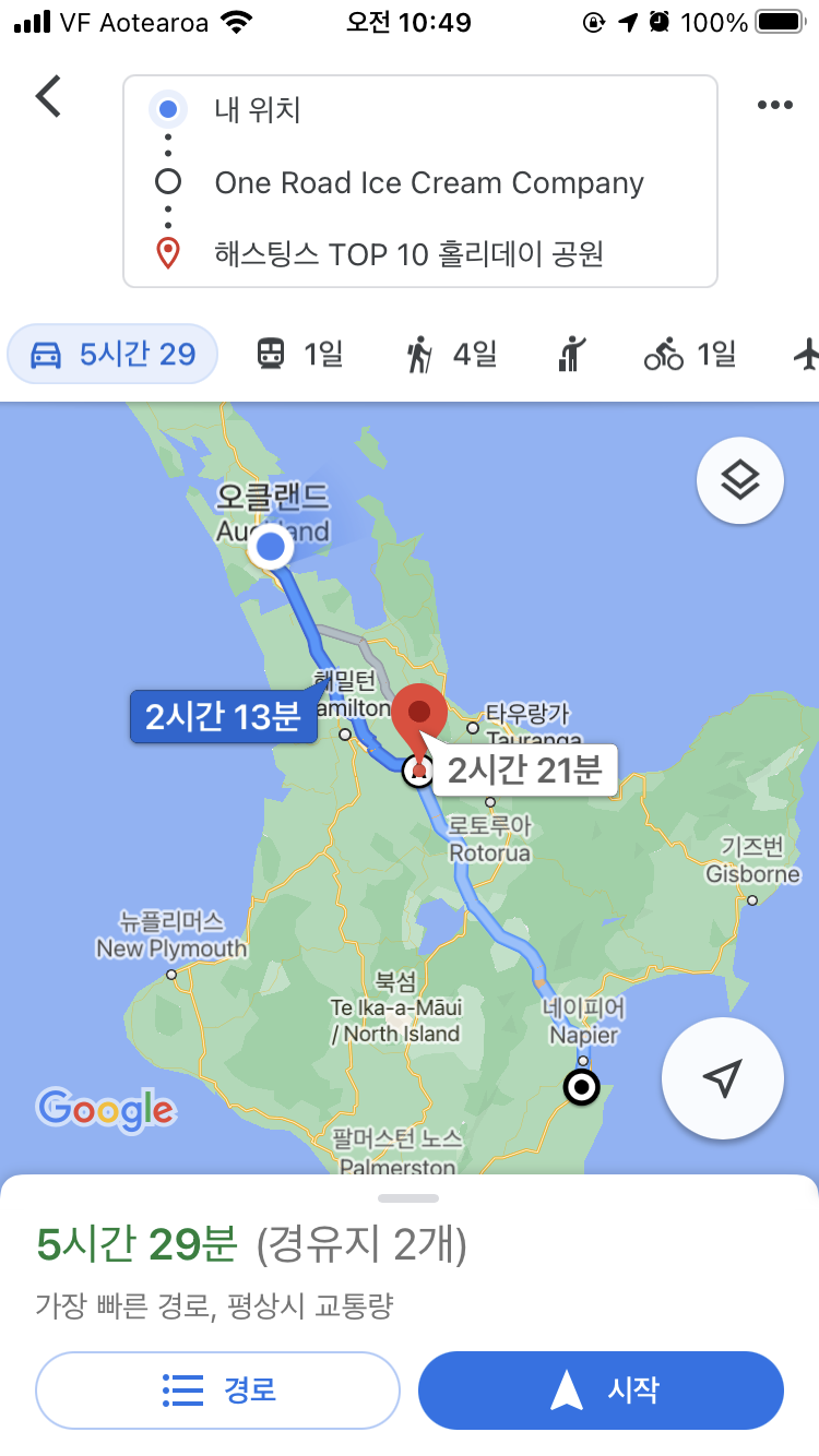 오클랜드에서 헤이스팅스 TOP 10 홀리데이파크 까지는 무려 5시간 반 정도가 걸린다.