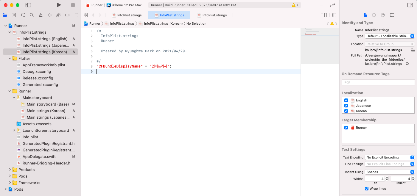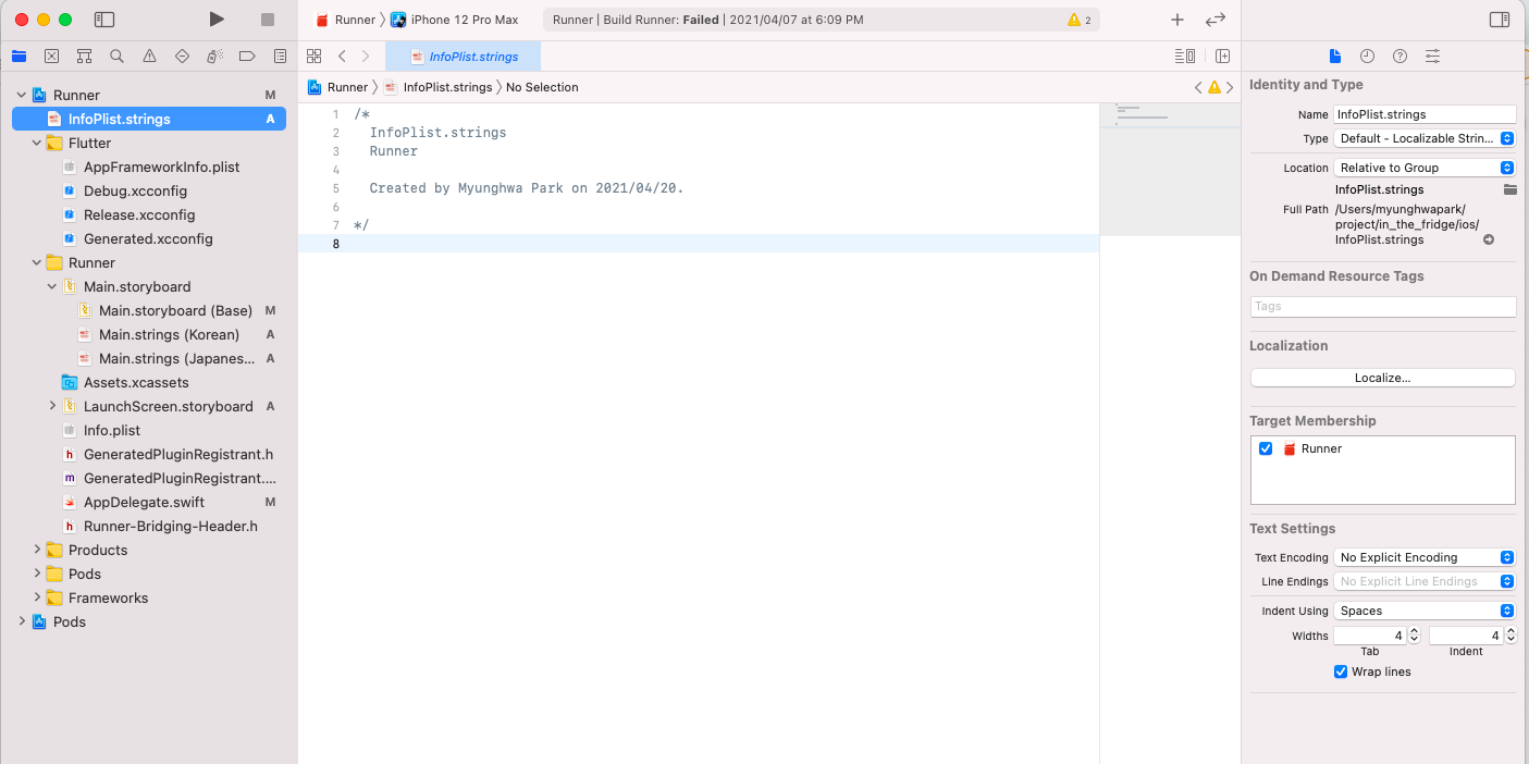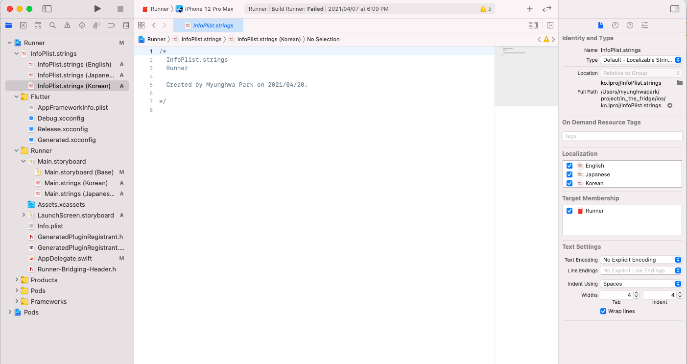 이제 InfoPlist.strings 파일을 추가해야 한다.