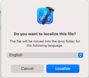 만들어진 파일을 클릭하면 우측에 Localize 버튼이 보인다. 클릭한다.